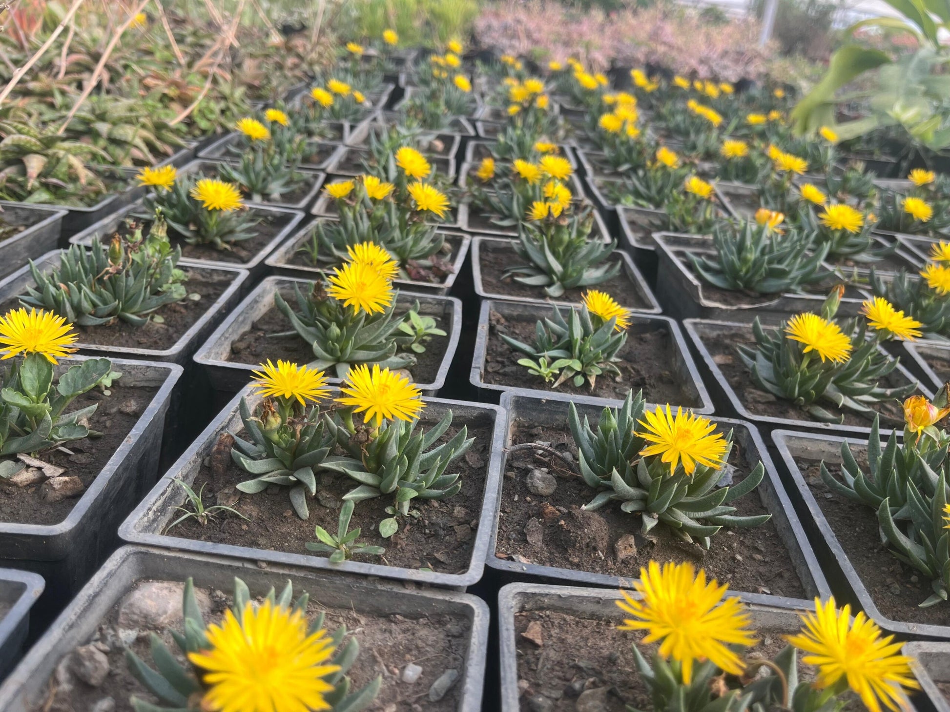 3️⃣ Corpuscularia Lehmannii (Ice Plant) – A rare succulent with geometric, blue-green leaves and dainty yellow flowers.