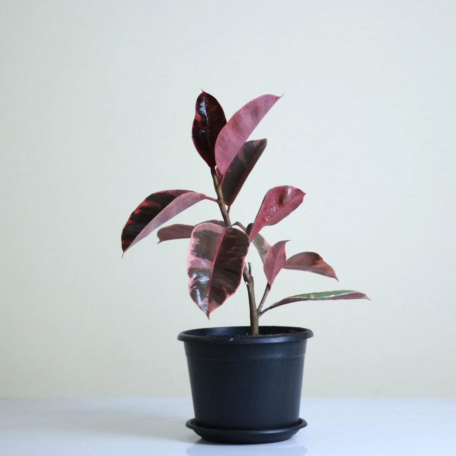 The Rubber Plant (Ficus elastica) is a popular indoor plant known for its glossy, deep green leaves and air-purifying qualities. Ideal for homes and offices, it thrives in bright, indirect light and requires minimal maintenance. This low-maintenance plant improves indoor air quality and adds an elegant touch to any space. Water it moderately, allowing the soil to dry between waterings. A perfect choice for plant lovers looking for a durable and stylish houseplant.